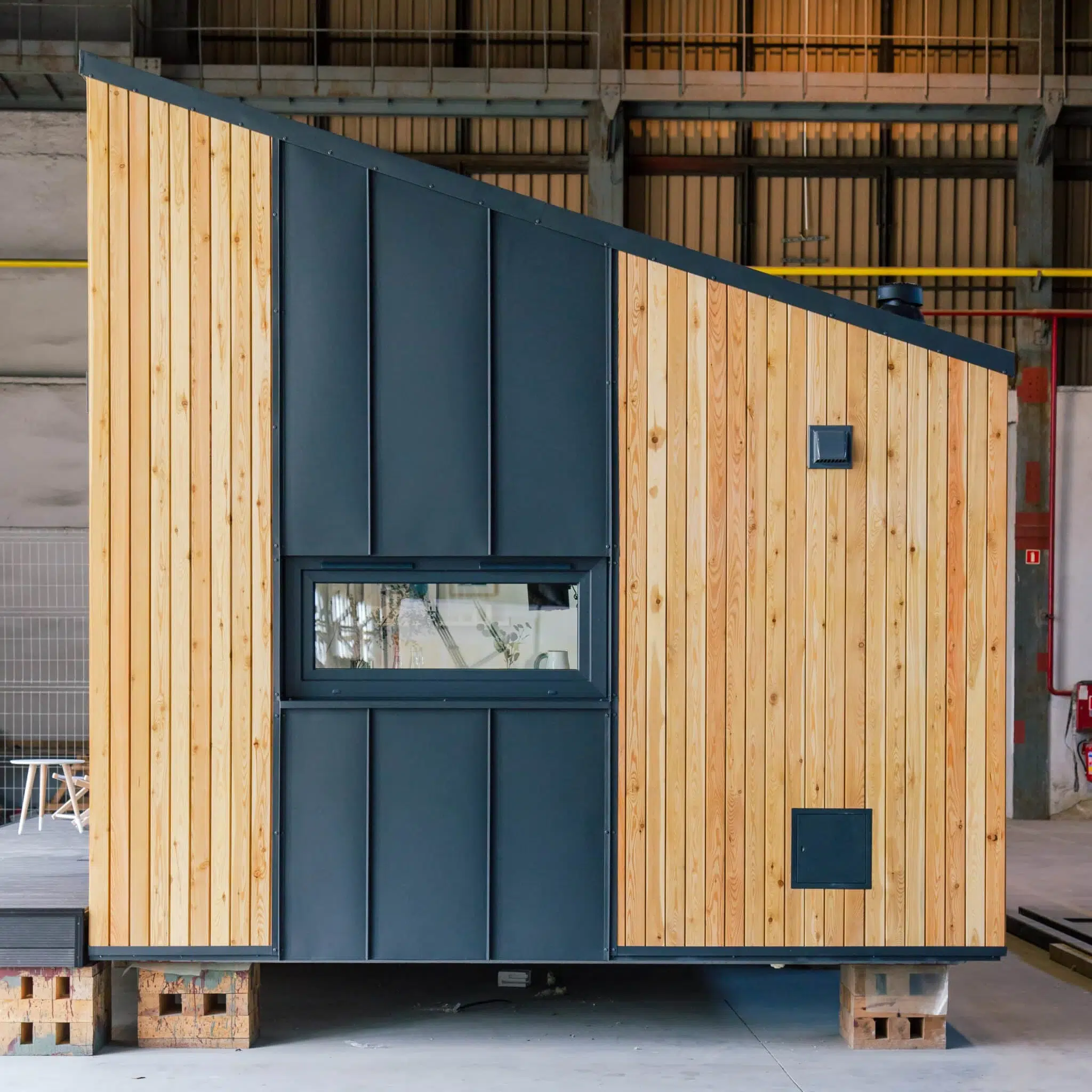 The Nook is our smallest lodge, designed with modular technology on a single frame. It features a monopitch roof, sheet metal facade panels, and timber cladding. Its open-plan design maximises daylight and views through a large panorama window. It is ideal for those who appreciate scenic surroundings.
